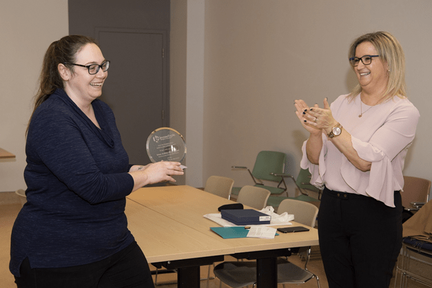 Le 19 novembre dernier, Andrée-Anne Savard, anciennement technicienne en administration à la Direction de l’enseignement universitaire, a reçu le prix Marjolaine-Lambert dans la catégorie Responsable de stage. Ce prix est remis aux personnes s’étant particulièrement démarquées dans le recrutement et la coordination du programme Jeunes Explorateurs.